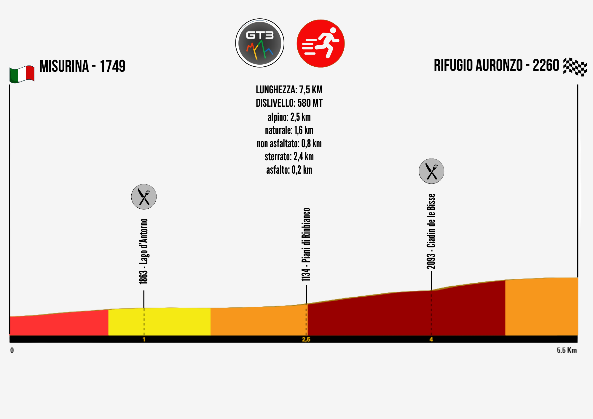 After swimming in the waters of Lake Auronzo and riding up the valleys on your bike, it is time to put all your grit on the ground. The third leg of the GT3 LAVAREDO Gravel Cross Triathlon is more than a run: it is an ascent toward legend. 7.5 km with 580 meters of elevation gain separate you from glory, at the feet of the stone giants.
