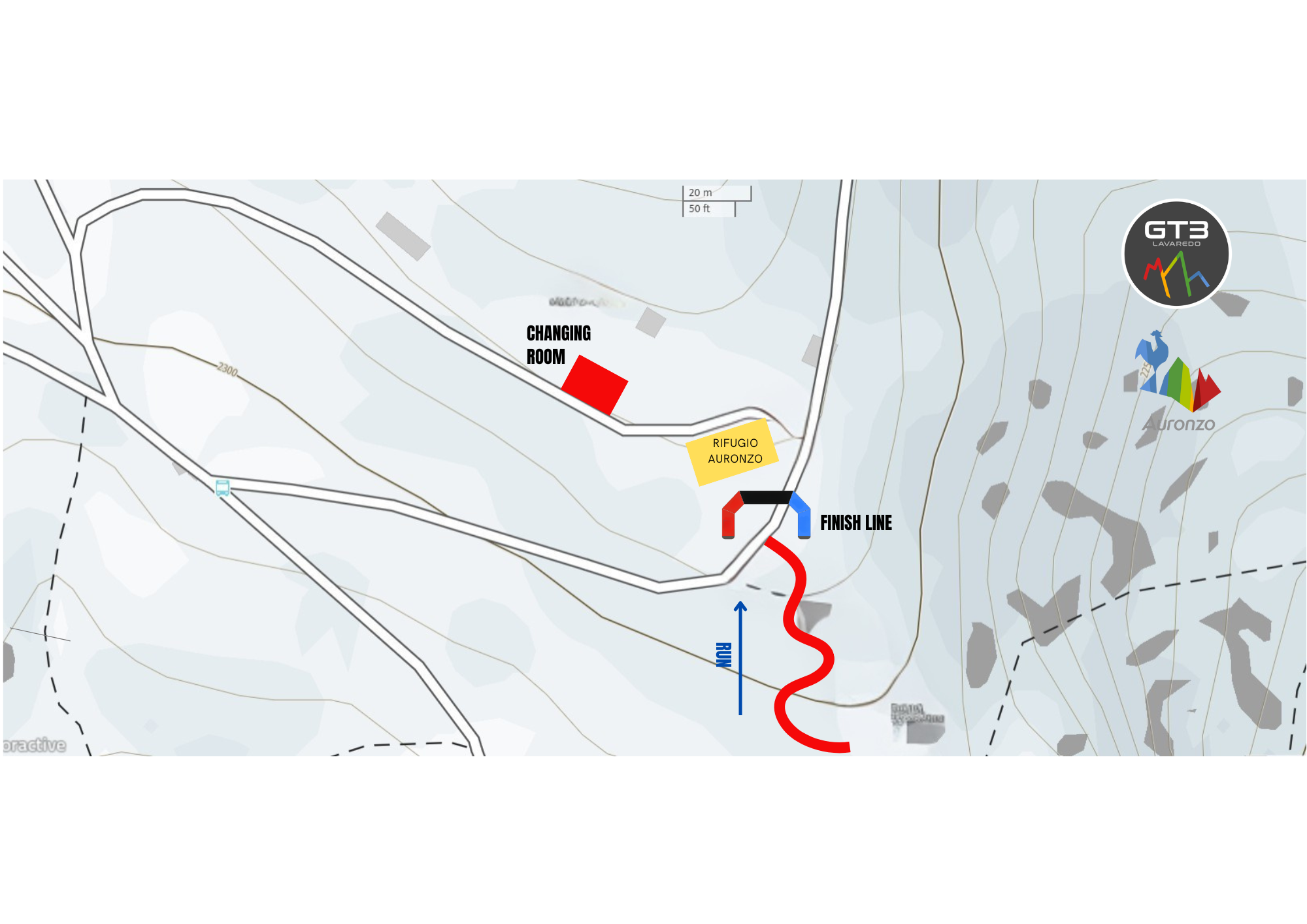 Vicino al campo da calcio di Auronzo ci sono il Race Office, il punto di riferimento per tutti gli iscritti, e le Changing Room, spazi con gli spogliatoi e le docce per tutti gli iscritti.