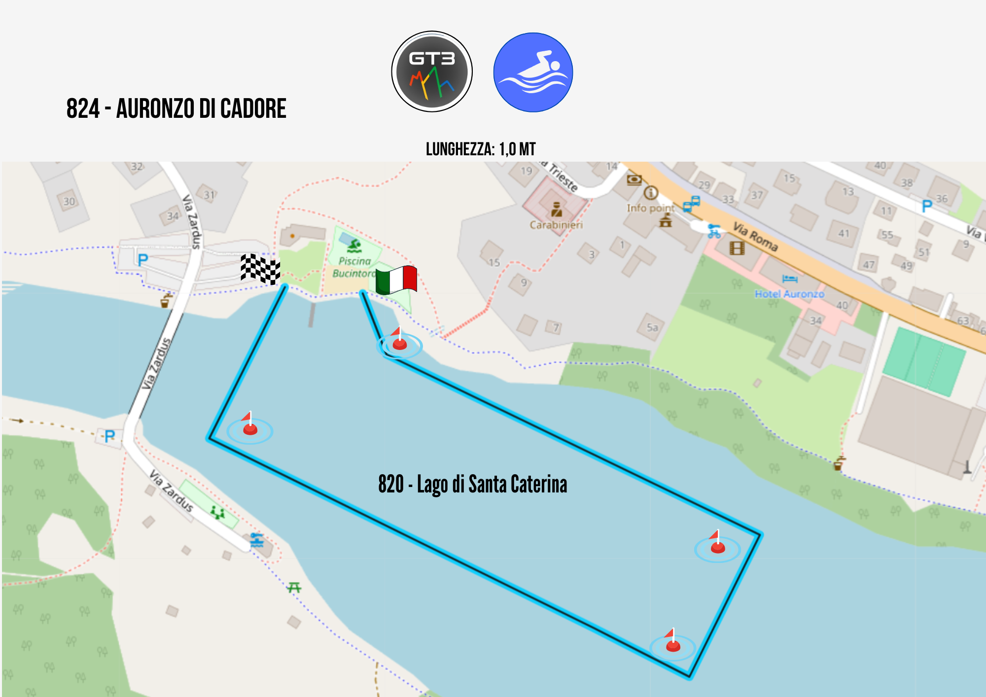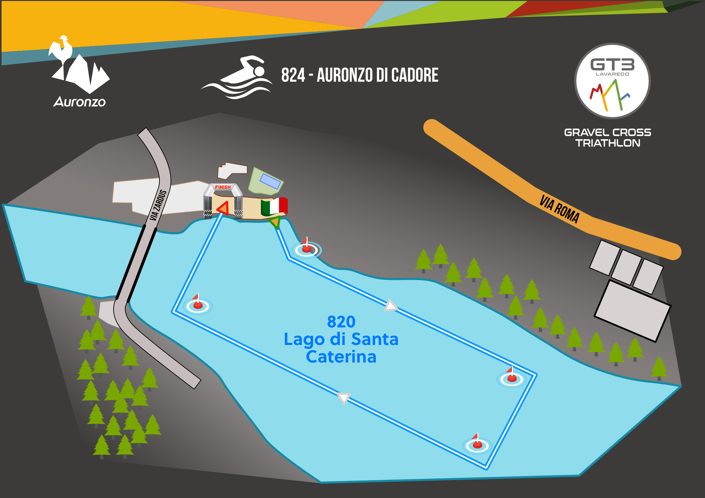 L’inizio della tua sfida “From the Lake to the Sky” non potrebbe avere una cornice più spettacolare. La frazione di nuoto del GT3 LAVAREDO Gravel Cross Triathlon si svolge nelle acque cristalline del Lago di Santa Caterina, ad Auronzo di Cadore, un vero gioiello incastonato tra le vette più iconiche del mondo.